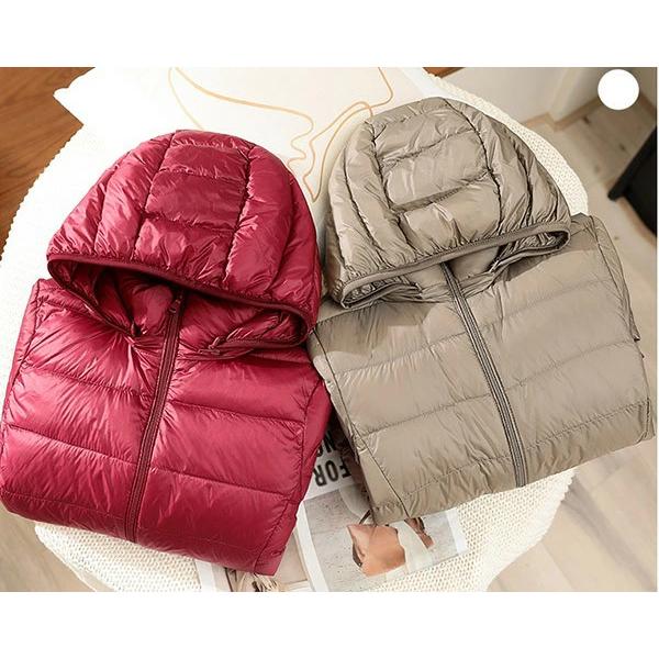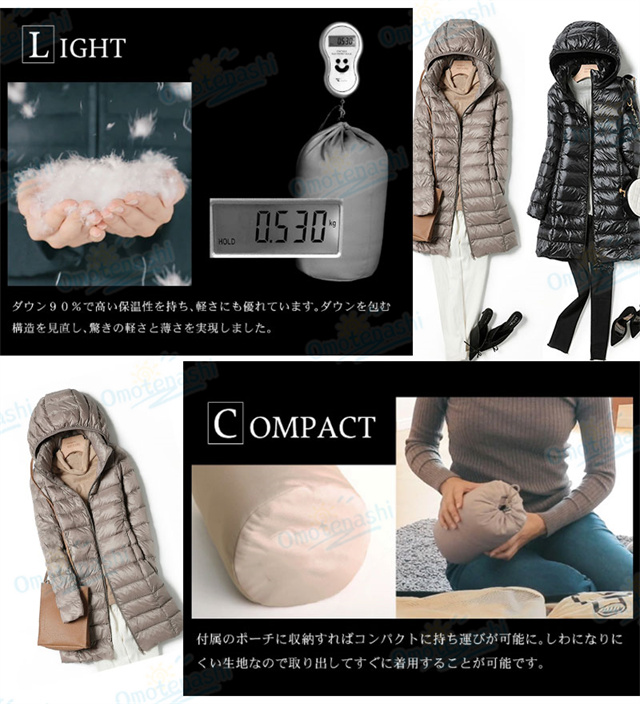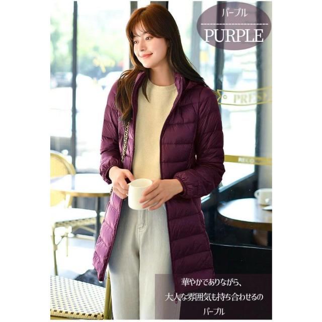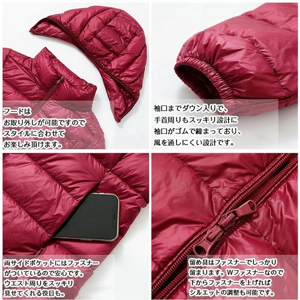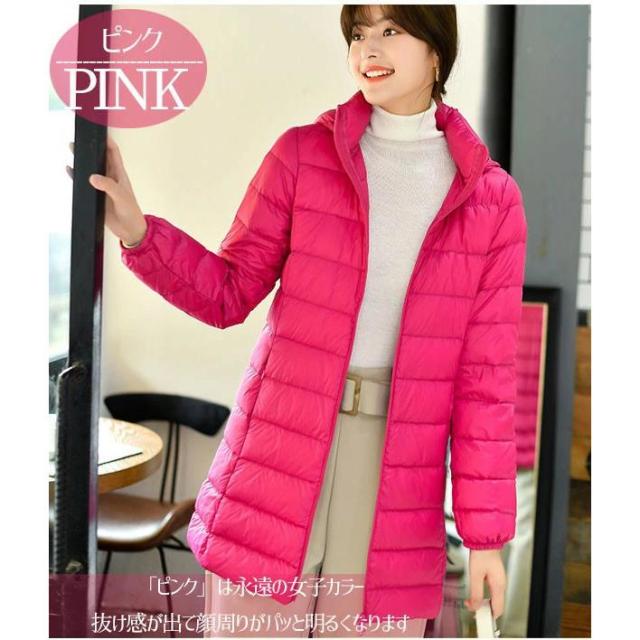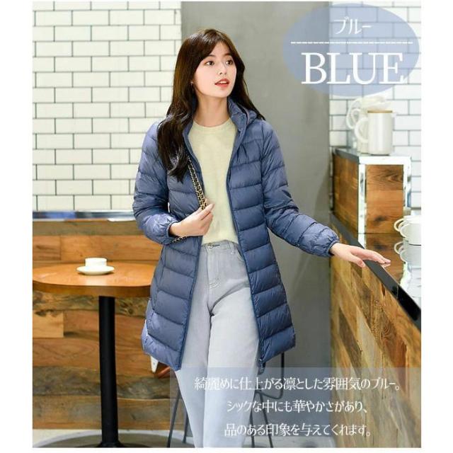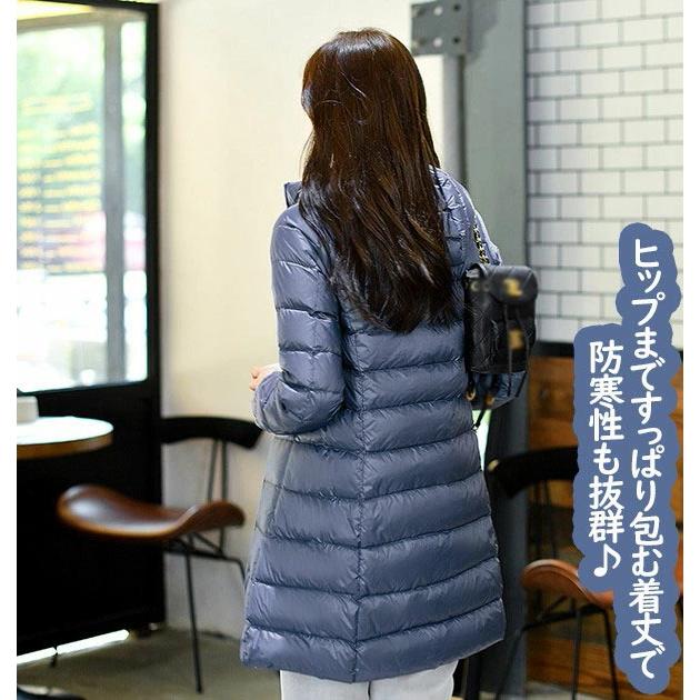 ライトダウン ダウンジャケット 薄型 ダウンコートレディース 収納付き 婦人服 ロン丈 軽量 フード付き 冬物 あたたっか 防風防寒 ふわふわ 撥水 オシャレ 通勤 OL 細身 薄手