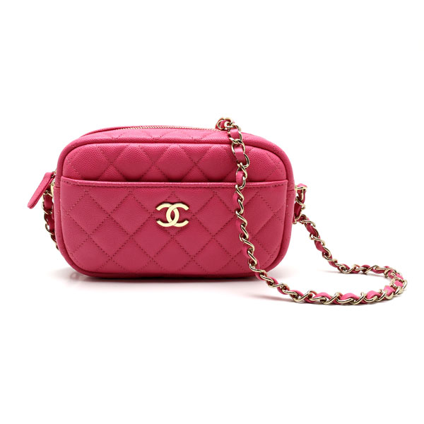 【楠本質店/元住吉】CHANEL/シャネル チェーンショルダー ピンクキャビアスキン ゴールド金具 箱付【中古】