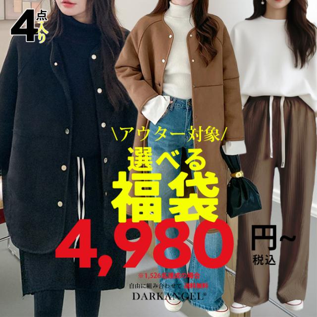 福袋 2026福袋 ※クーポン適用不可※ アウター入り アウター選べる 最大89%OFF 4点入り 格安福袋 2025 レディース 服 きれいめ あったかい ルームウェア パンツ 自由に選べる チケット 冬 防寒 ワンピース ニット 人気 ワイドパンツ インナー ダークエンジェル 送料無料