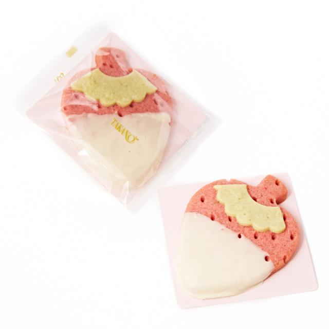 | 苺パウダーを生地に練り込み焼き上げたサブレにホワイトチョコをコーティングした苺型のかわいらしいサブレ。 |