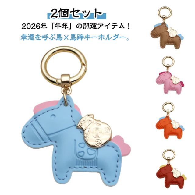 キーホルダー 馬と蹄鉄のキーホルダー バッグチャーム 【2個セット】縁起の良い馬と馬蹄 皮革 飾り うま 革小物 軽量 開運 薄型 小型 ストラップ かわいい レザーキーリング 【2個セット】縁起の良い馬と馬蹄 かぎ モチーフ 財布 金運 おしゃれ 母の日 プレゼント 2026年