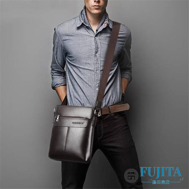 ショルダーバッグ メンズ PU 防水 斜め掛け ビジネスバッグ 紳士 レザー PUレザー 通勤 通学 薄い ブラック ブラウン 縦型 出張
