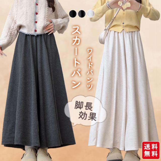ワイドパンツ スカートパンツ パンツ レディース A ラインスカート ボトムス 体型カバー ゆったり 脚長効果 ハイウエスト ゴムウエストカジュアル
