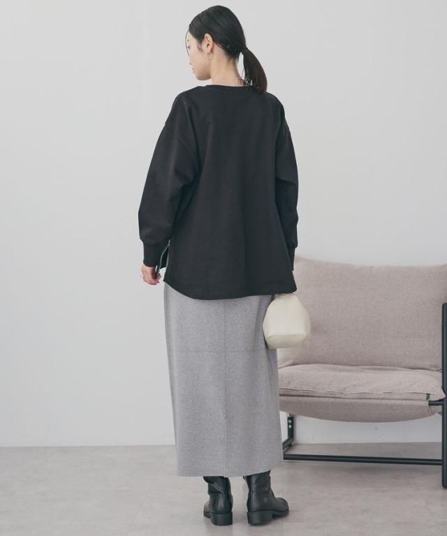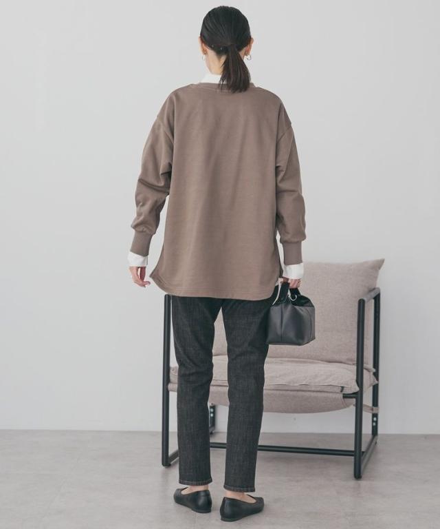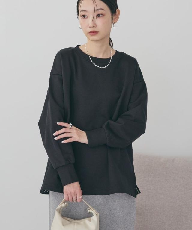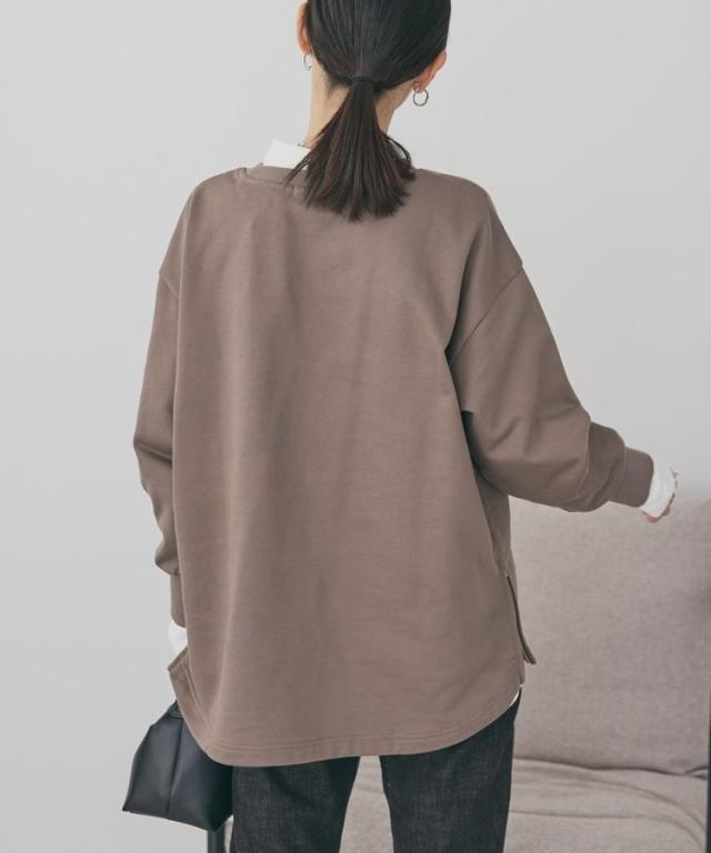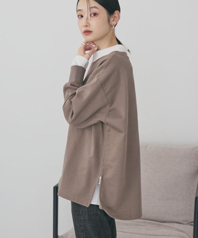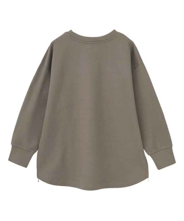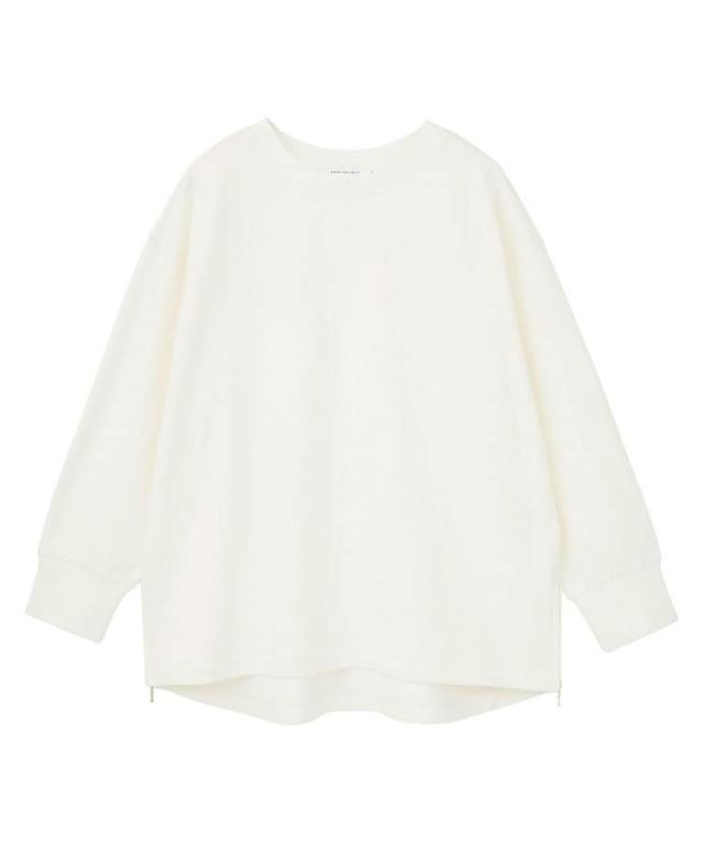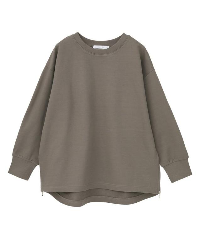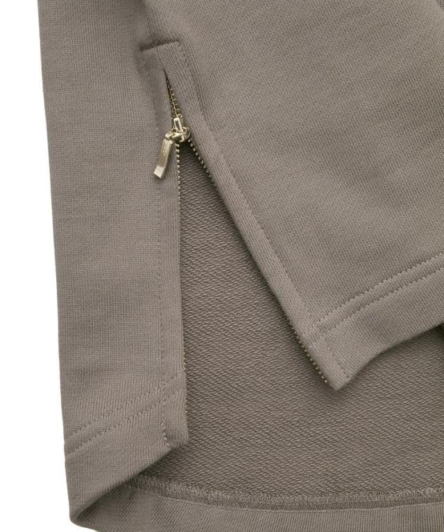 両サイドに施したファスナー付きスリットがポイントの裏毛プルオーバー。