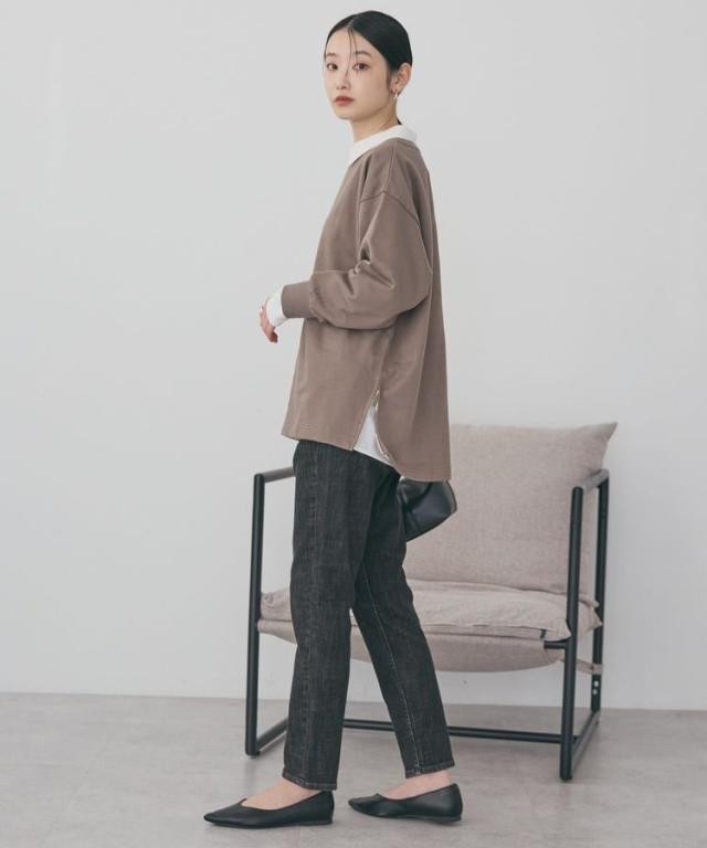 サイドジップを開けてインナーやカットソーを見せるのもおすすめです。透け感[なし]