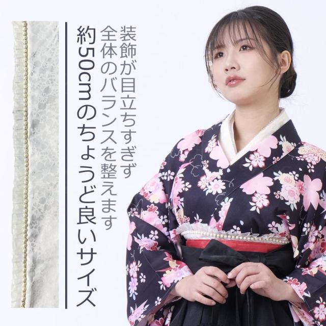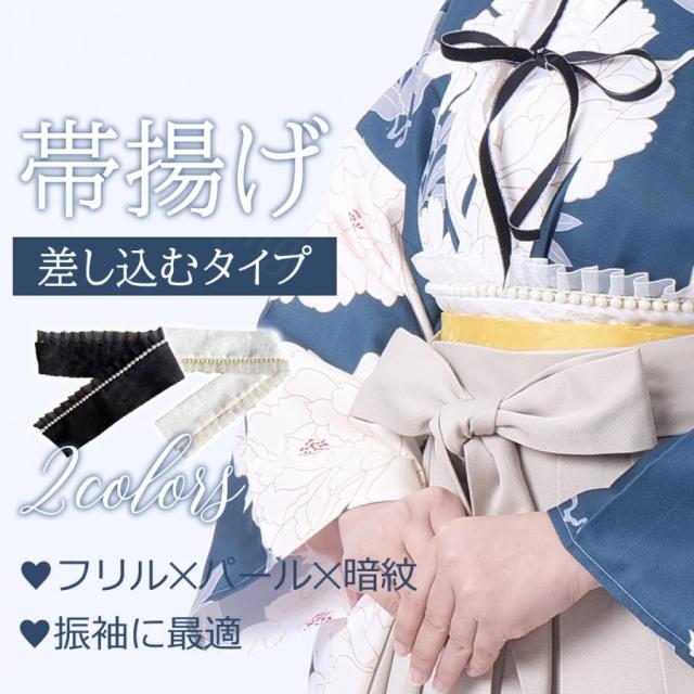 帯揚げ 和洋折衷 暗紋 和装小物 振袖 フリル パール 白 黒 ホワイト ブラック おしゃれ 大人 レディース 卒業式 成人式 浴衣
