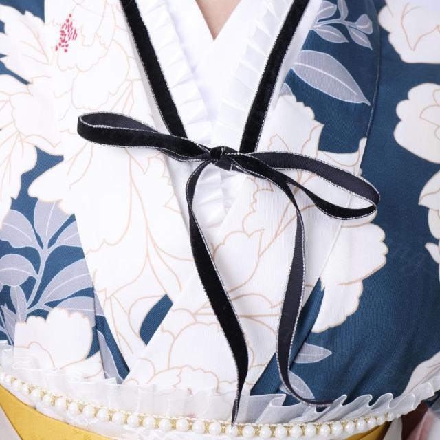 華やかなデザイン: リボンやフリルのディテールが、和装にモダンなエッセンスを加え、華やかで個性的な印象を与えます。