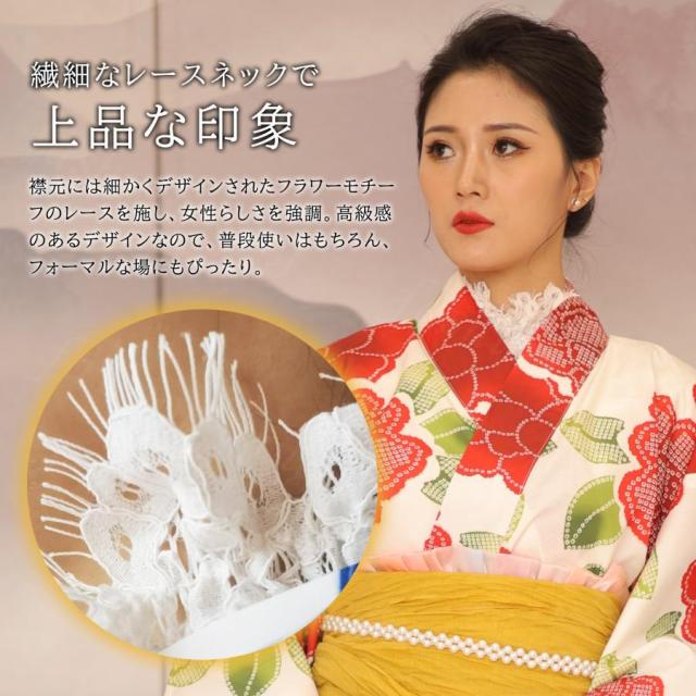 レース素材が上品で、和洋折衷のデザインがさまざまなスタイルにマッチします。