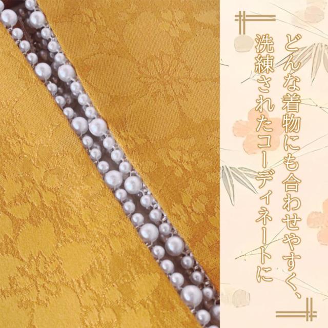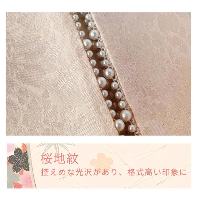 暗紋付きのデザインに桜と大小異なるパールがあしらわれ、特別な日の装いを一層引き立てます。