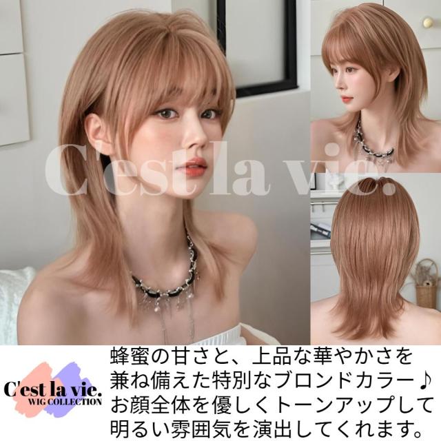 ウィッグ セミロング シャギー ウルフ ブラウン ハイライト メッシュ フルウィッグ 前髪あり 医療用 かつら ネット付き 自然 バレない 普段使い 即日出荷 送料無料