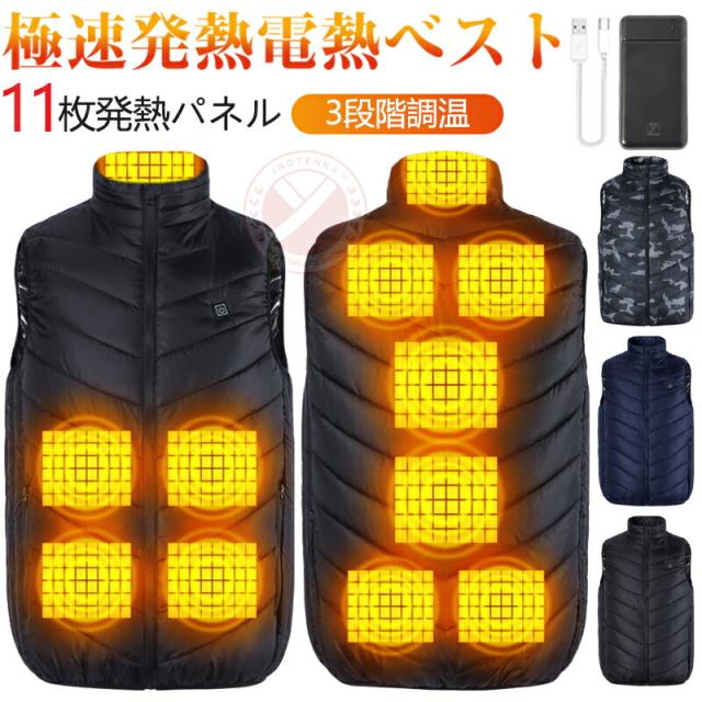 【あす楽】11つヒーター 電熱ベスト ヒーターベスト 電熱ジャケット 大きいサイズ M-6XL USB式 11つエリア発熱 チョッキ 速暖 3段温度調整 ヒーター付きベスト 電熱ウェア 電熱インナー 加熱 ベスト 防寒対策 防寒 夜釣り 外仕事 メンズ レディース 男女兼用 中綿いり