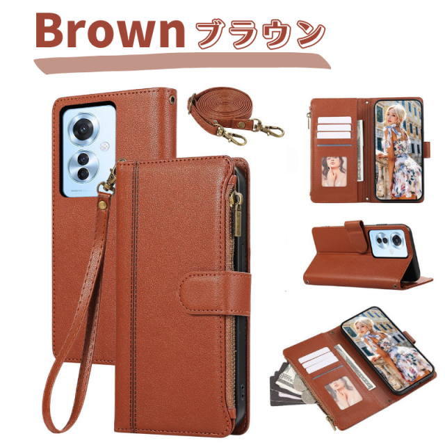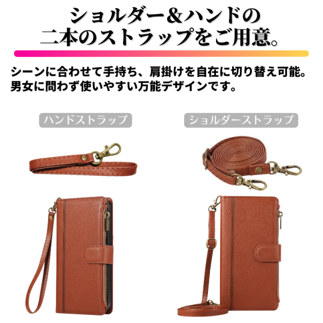 arrows We ケース 手帳型 レザー お財布 ショルダー カードケース 軽量 カード収納 ストラップ 2種付 耐衝撃 スマホケース カバー 男女兼用 F-51B FCG01 ブラウン