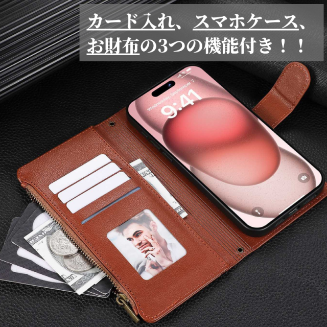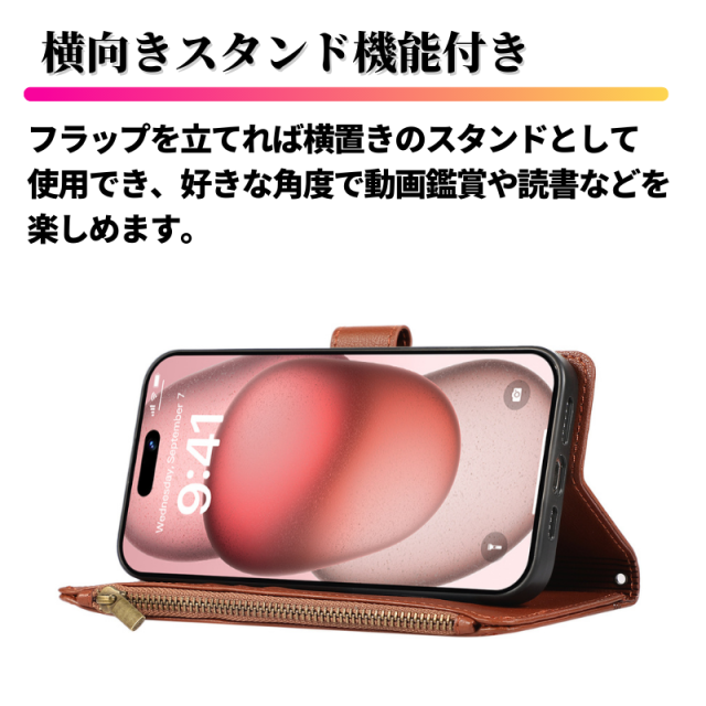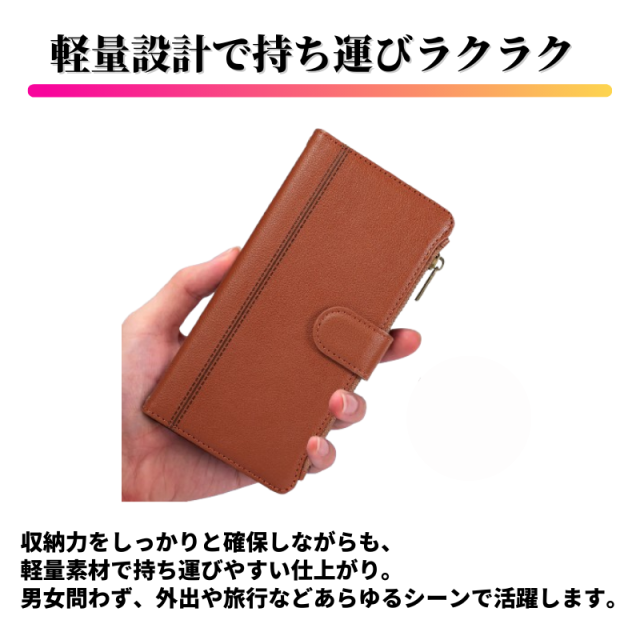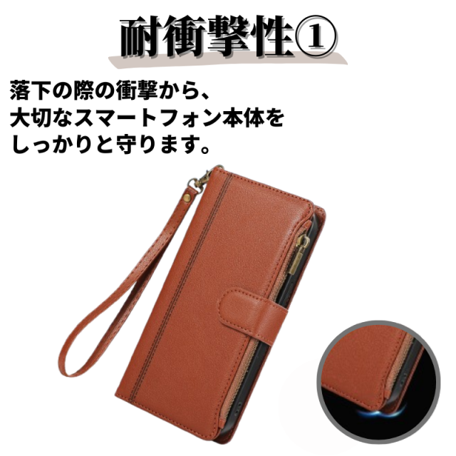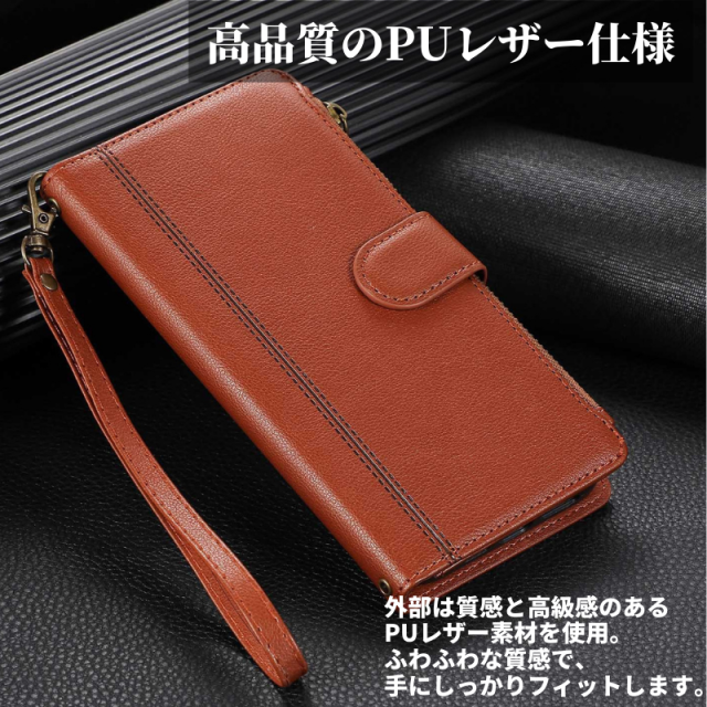 外部は上質なPUレザーを採用し、 ふわふわな質感で、手にしっかりフィット。 内部は柔らかいTPU材質を採用し、本体への衝撃を緩和させる仕様で、キズや衝撃から大切なスマートフォンをしっかり保護