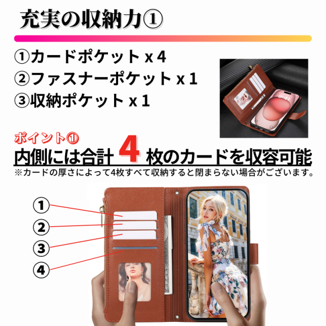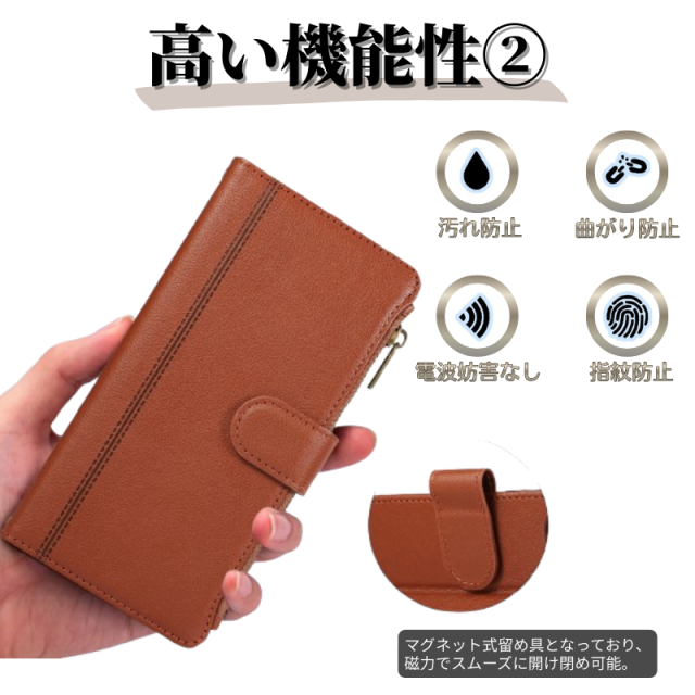 ※本製品はマグネットを使用しておりますのでクレジットカードなどの磁気カードの収納は避け、カードの注意事項をよくご確認の上ご使用ください。読み取り等ができなくなる恐れがあります。