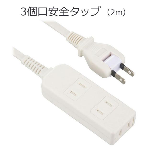 安心 安全 電源延長コード 2m 安全タップ 3個口 フリープラグ ホコリシャッター ホワイト 電源コード 延長コード HS-T32SFW-22 送料無料 ■