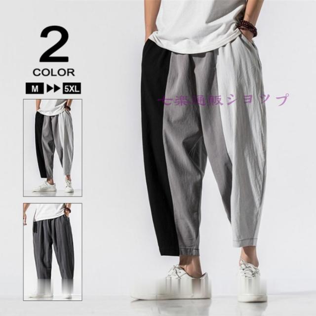 ワイドパンツ メンズ イージーパンツ 夏用 サルエルパンツ 夏ズボン クロップド 九分丈 ズボン ずぼん 大きいサイズ 薄手 春 夏 秋 春夏 裾ゴム 麻