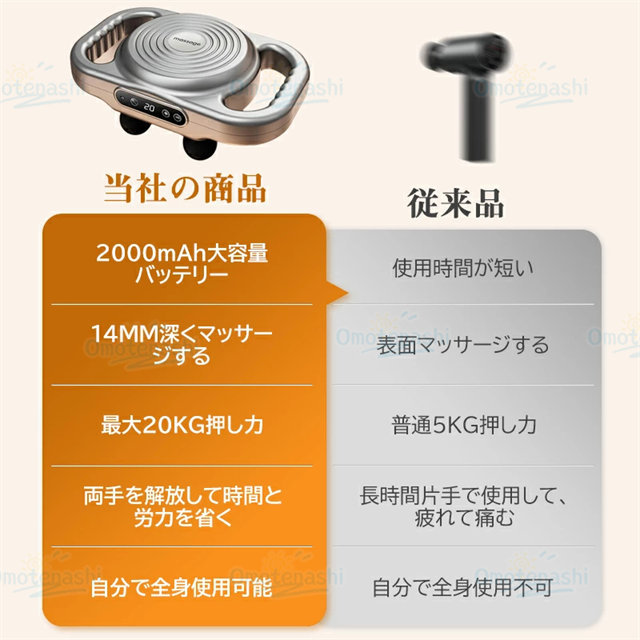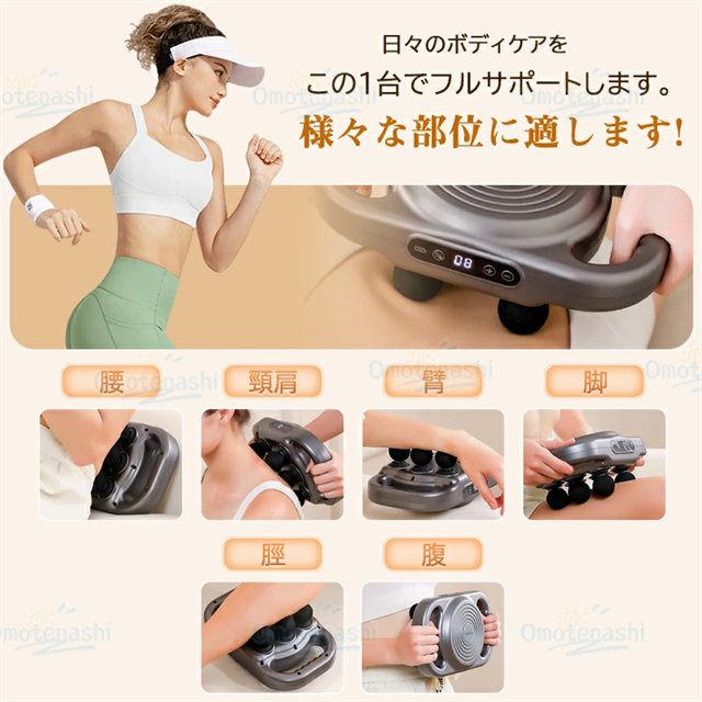 ワンタッチ操作でき、軽量のデザインを採用し、片手でも手軽に使用できるので、コードレスなので、テレビを見ながら、全身ケアができる。