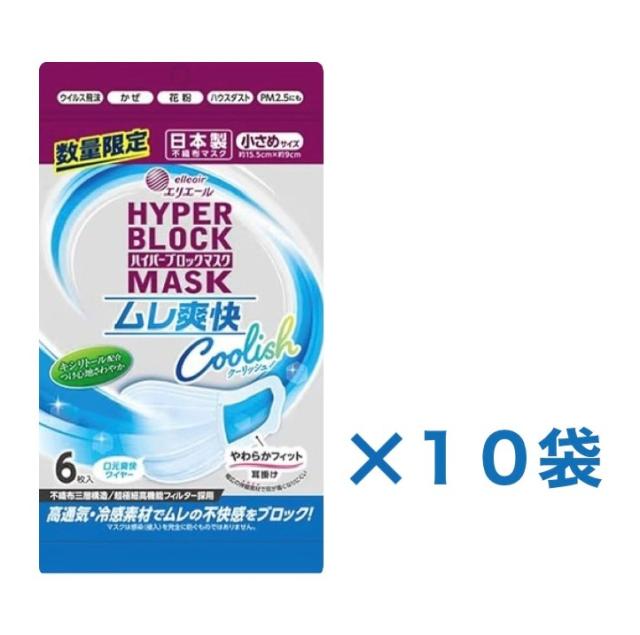 10袋セット エリエール ハイパーブロックマスク ムレ爽快クーリッシュ 小さめサイズ 60枚(6枚×10袋) 大阪北倉庫