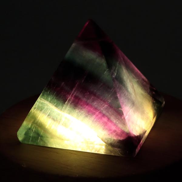 フローライト ピラミッド LEDライト付き 癒し グッズ 空間 幻想的 照明 手のひらサイズ 1点もの レインボー 蛍石 パワーストーン 天然石 爆買 クリスマス
