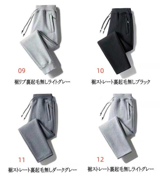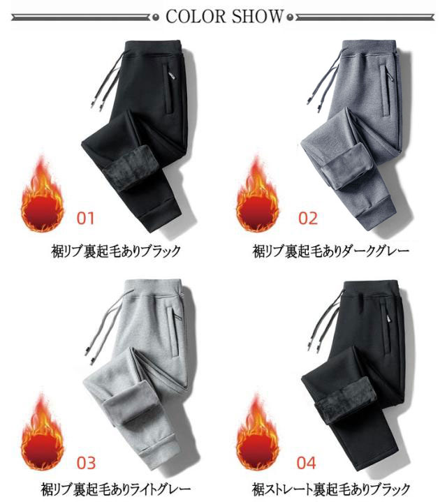 | 裏起毛あり/無しの2タイプ! 男女兼用、ジャージ下・スウェットパンツ。 裏地に裏起毛加工を施し毛布にくるまれたような抜群の暖かさを発揮してくれ、 真冬の寒さの中でも快適に過ごせて機能的。 ウエストはゴム仕様で紐も付いていて、ご自由にサイズ調節可能。 ルームウェアとしてはもちろん、スポーツやアウトドアにも使える万能アイテム! | |