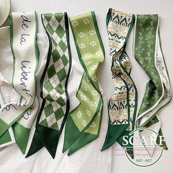 花柄 幾何学柄 シルク調スカーフ プリント 配色バンダナ レディース スリムスカーフ 可愛い細スカーフ おしゃれヘアリボン ヘアアクセサリー 春夏ネックスカーフ