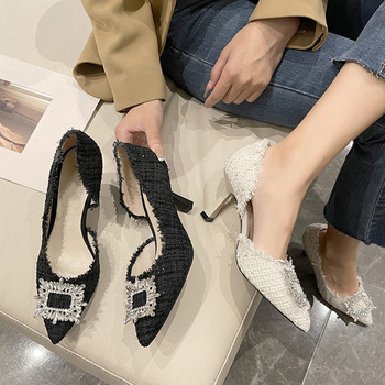 ツイードパンプス ポインテッドトゥ 華奢