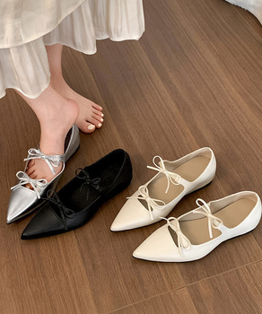 ダブルリボンパンプス美脚ポインテッドトゥ
