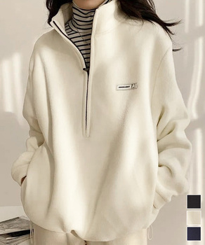 レディース 秋冬スタンドカラートレーナーカジュアル おしゃれ ゆったり 軽量起毛スウェット あったかプルオーバー 風体型カバートップス ジッパートレーナー ドロップショルダー