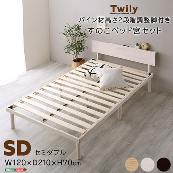 宮パイン材高さ2段階調整脚付きすのこベッド セミダブル