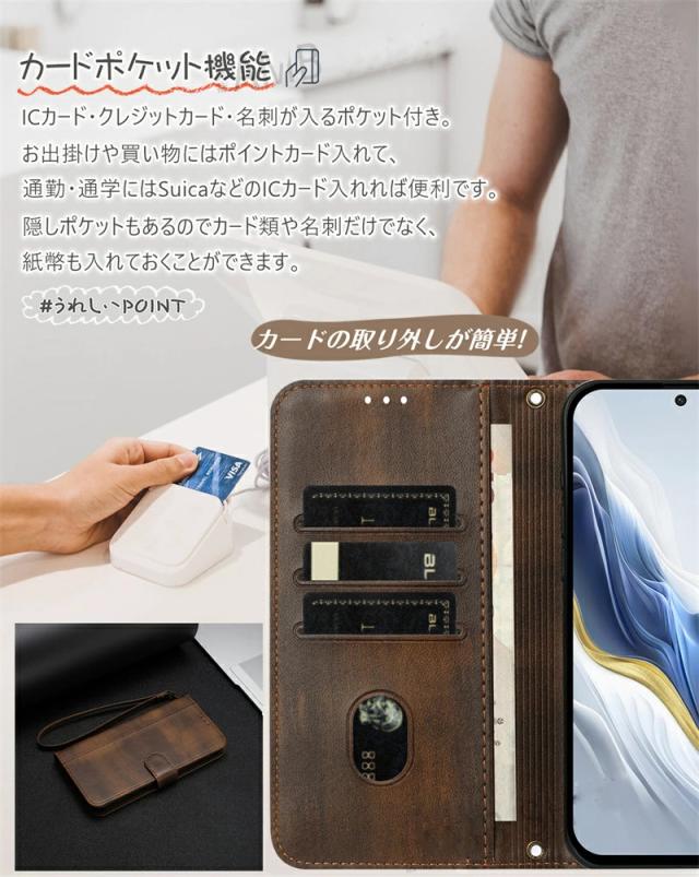 ● セット内容:スマホケース/ハンドストラップ ● 大人のきれいめスタイルにおすすめです。持ちやすい手帳型スマホケース。 ● レディースメンズ問わずおすすめ出来るシンプルデザインです。 ● レザーは大人っぽい落ち着きやおしゃれさを感じさせるPUレザー素材。 ● 内側にはカード入れとフリーポケットがついており、名刺・交通系ICカード・紙幣などを入れられるのが特徴です。 ● ハンドストラップ付きで、お買い物やデートなど、これ1つでお出掛けが出来ます。 ● 衝撃を吸収する素材を使用し、スマホ本体を衝撃から守ります。 ● 落ち着いたカラーが魅力、ちょっとしたギフトにもおすすめのアイテムです。 ● スタンド機能としても使用できるので動画鑑賞もしやすいです。 ● 各機種専用のカメラホールを開けて1つずつ丁寧に仕上がてお届け! ※商品画像は ご参考用です。 ご希望の機種のカメラ穴やサイズなどの位置に合わせて、カード収納部を作ります。 機種により、スマホケースのサイズやカードポケットの数などは異なります。 |