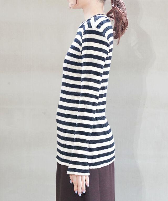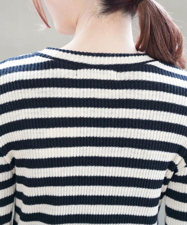 こちらは通常の「クルーネック」タイプよりも首元が詰まった「プチクルー」。