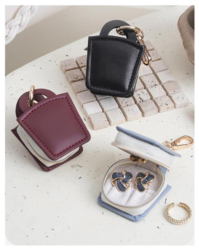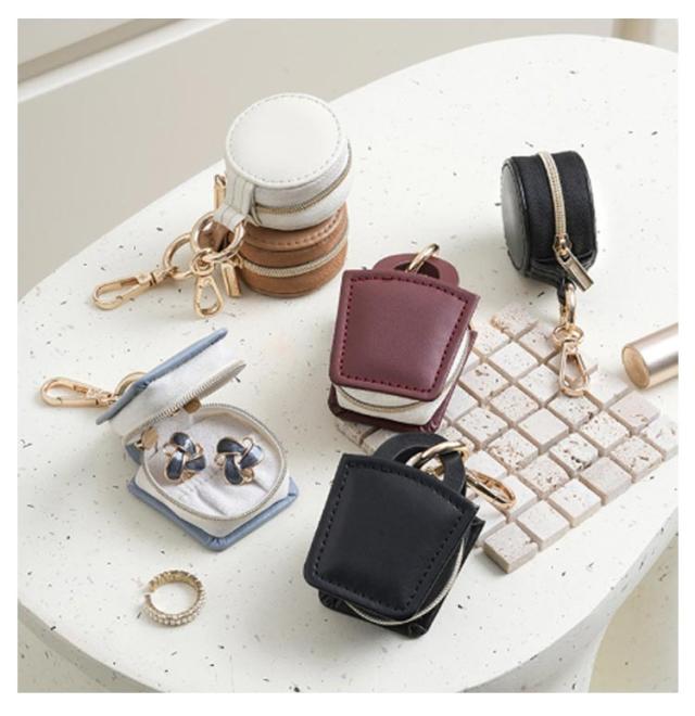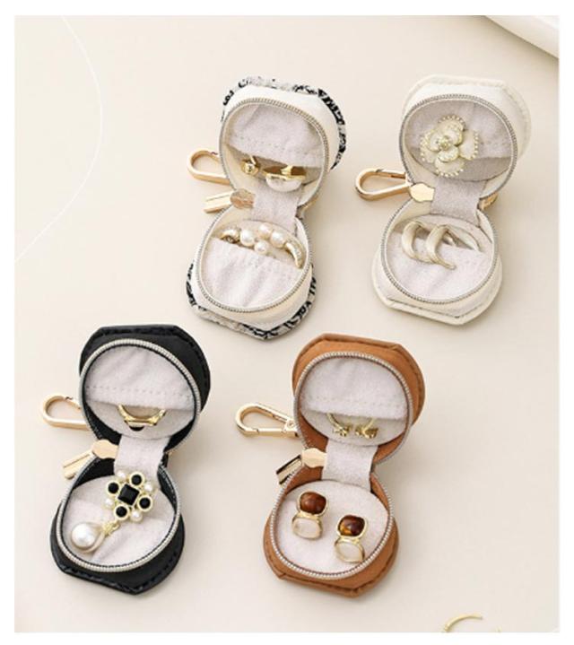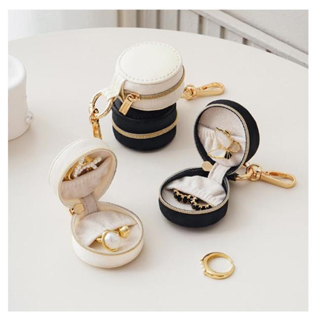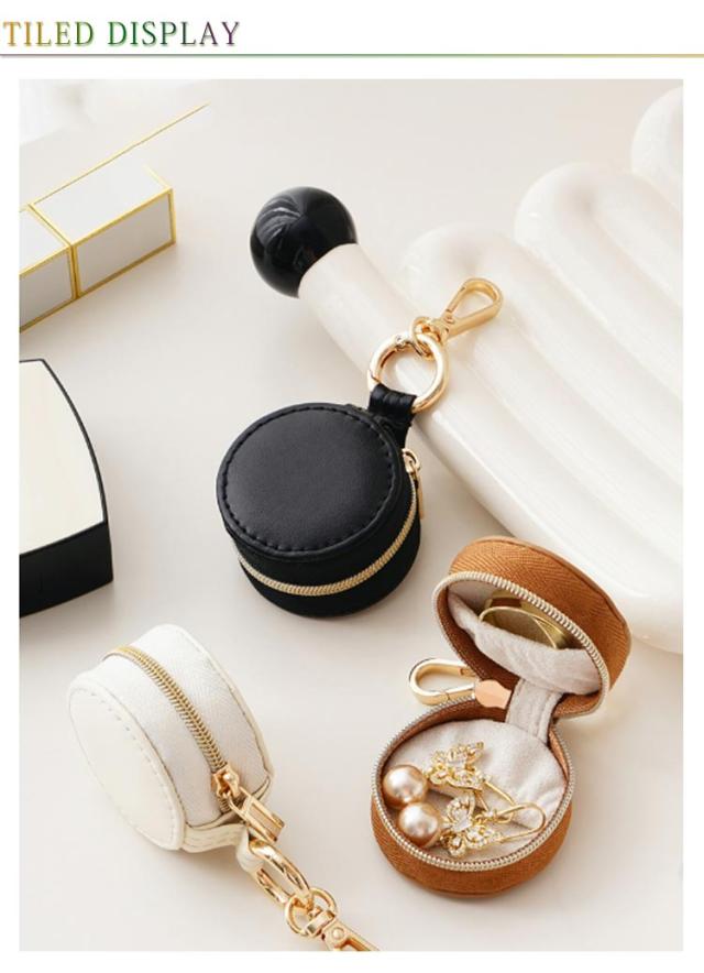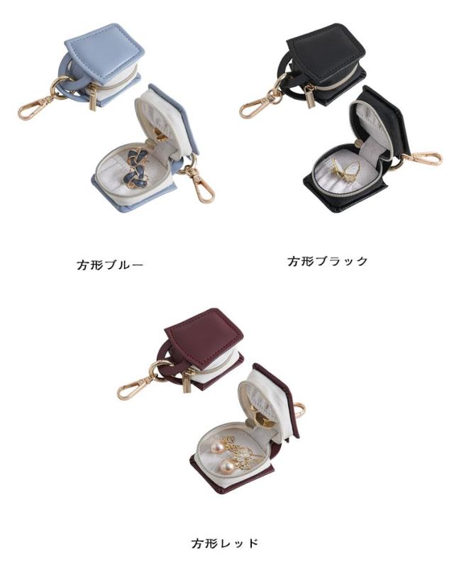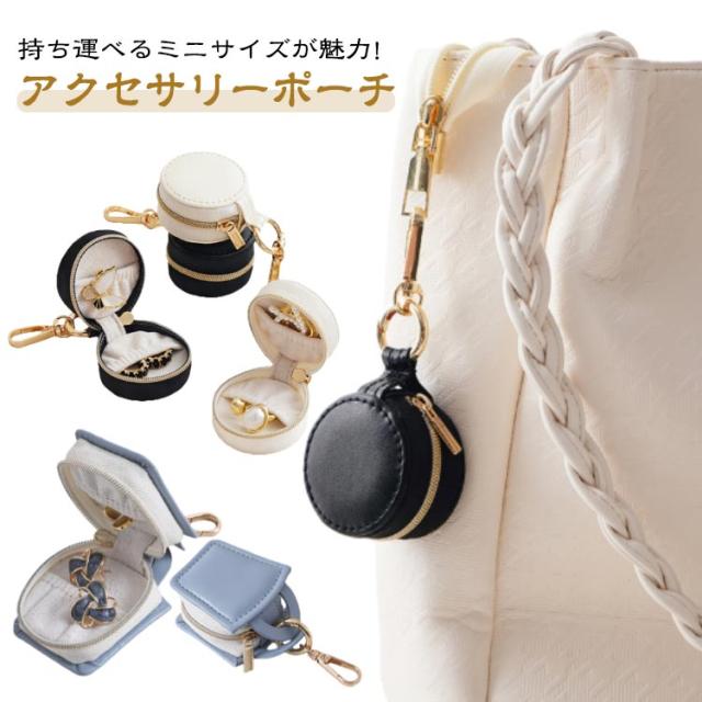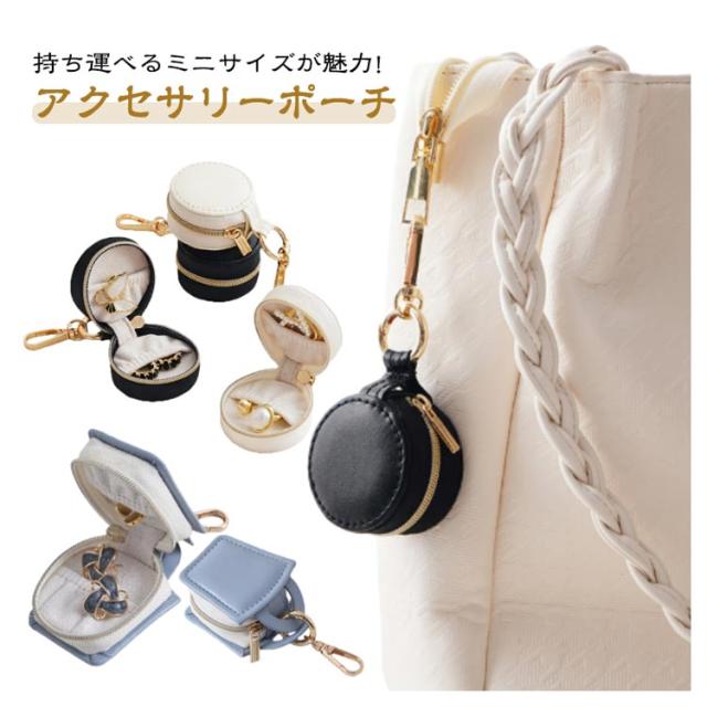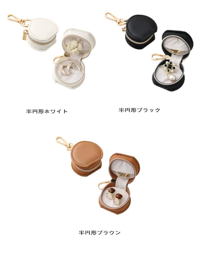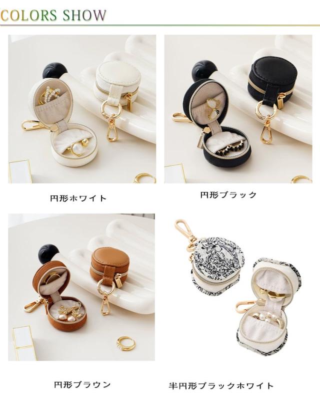 アクセサリーポーチ コンパクト アクセサリーケース アクセサリー収納 ジュエリーポーチ かわいい 方形 持ち運び 旅行用 携帯用 トラベルジュエリーケース おしゃれ 円形 半円形 アクセサリーケース 白 黒 ホワイト ブラック ブラウン ブルー