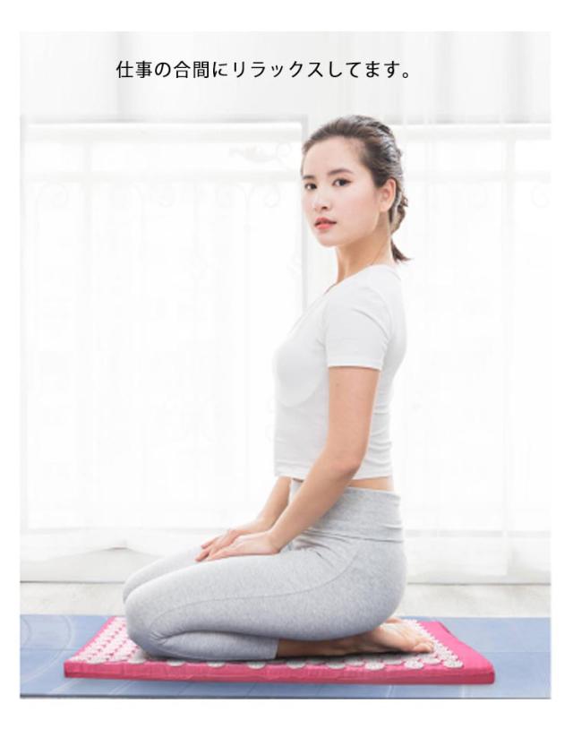 | 折りたたみ式マット 指圧マット 枕付き 収納袋付き 痛すぎず適度な刺激で気持ち良い。1日20分続けるだけ、お家で指圧リラックス 仕事の合間にリラックスしてます。 専用ポーチ付きで、折りたたんで持ち運び可能。 | |