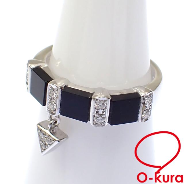 中古 ラソマ オニキス ダイヤモンド リング レディース K18WG 10号 0.12ct 4.6g 指輪 750 18金