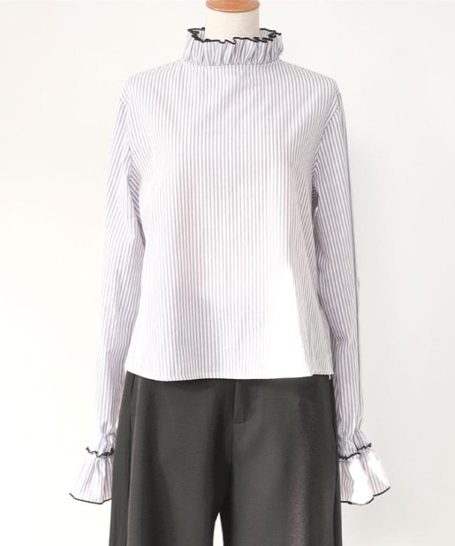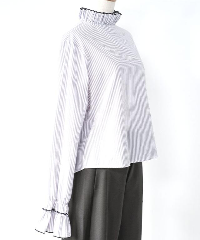 細かなシワ感が特徴のクリンクル素材を使用した、表情豊かなフリルブラウス。