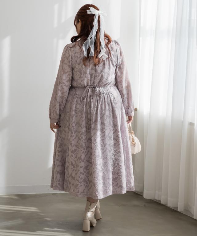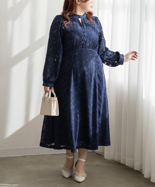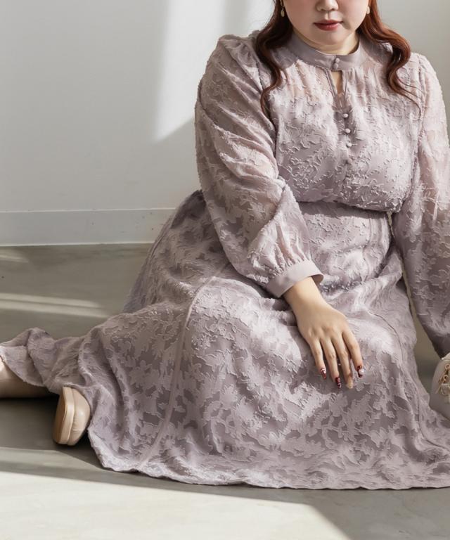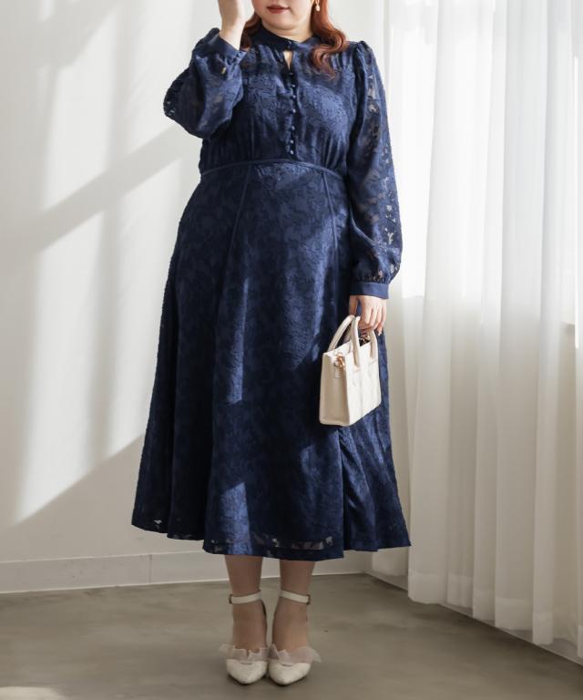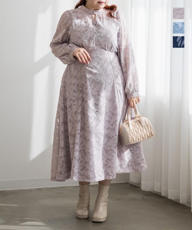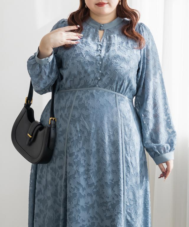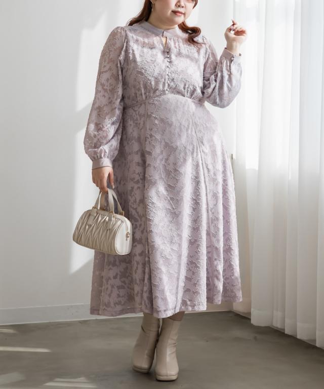 大きいサイズ/レディース/LL/3L/4L/CLETTEオリジナルパイピングデザインシアー花柄ワンピース