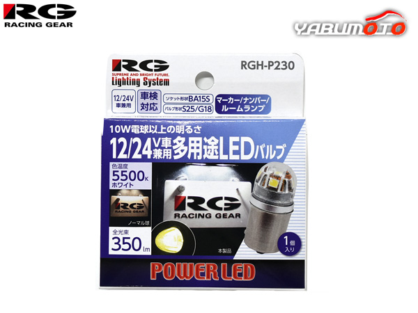 多用途 LEDバルブ 12V/24V 兼用 5500K ホワイト 350lm マーカー ナンバー ルームランプ 1個 車検対応 RG レーシングギア RGH-P230 送料無料