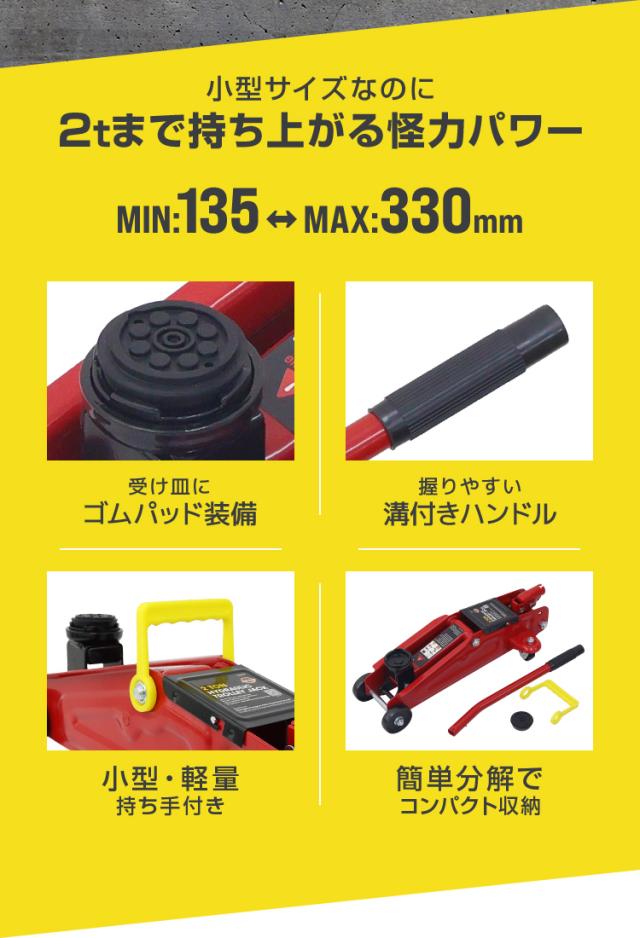 フロアジャッキ 2t ジャッキ 油圧ジャッキ 油圧 ガレージジャッキ コンパクト 軽量 ジャッキアップ タイヤ交換 オイル交換 送料無料
