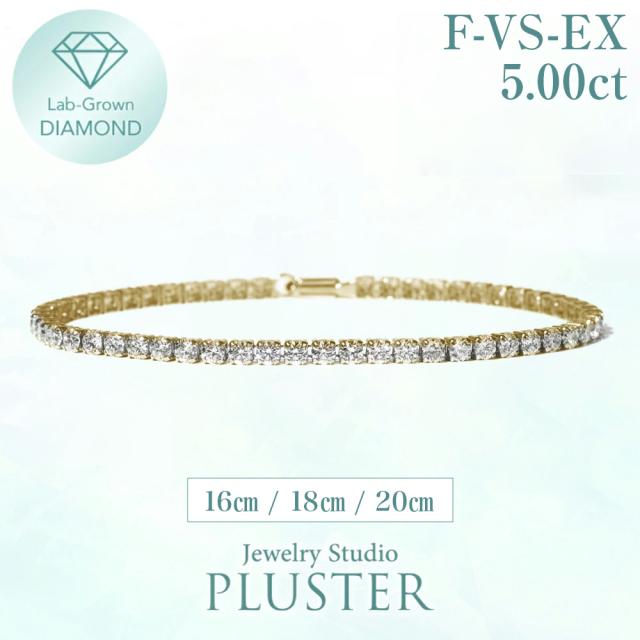 ダイヤモンド テニス ブレスレット 5.00ct ダイヤ テニスブレスレット プラチナ ラボグロウン ダイヤモンドブレスレット ダイヤブレスレット レディース K18 イエローゴールド 金属アレルギー ジュエリー アクセサリー プレゼント 女性 誕生日 ギフト 母の日
