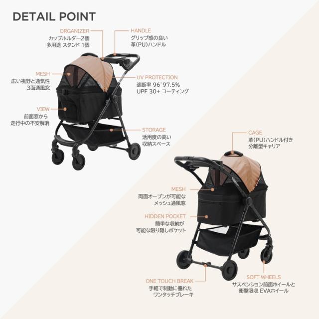 roomnhome EASY DX 分離型 3way 分離式 対面式 フルオープン 4輪 犬用 ペットキャリー トラベル 多頭 犬カート 小型犬 中型犬 ペット用カート コンパクト お出かけ 韓国インテリア【送料無料】