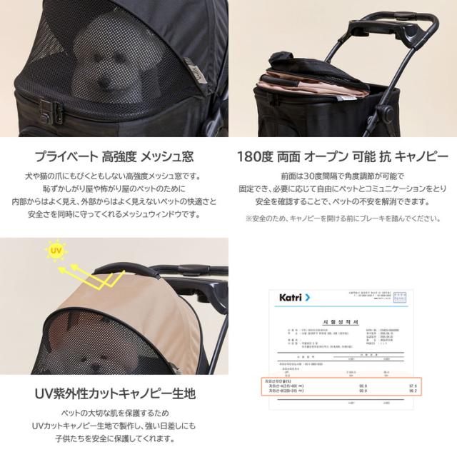 段差やデコボコ道でも揺れにくく、ペットへの負担を最小限に抑えます。