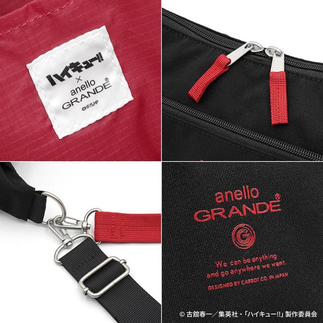 新作 anello GRANDE アネログランデ ハイキュー!! コラボ 2way A5 撥水 ショルダーバッグ レディース メンズ 斜めがけ 大人 軽量 手持ち 烏野高校 音駒高校 梟谷学園高校 10ポケット