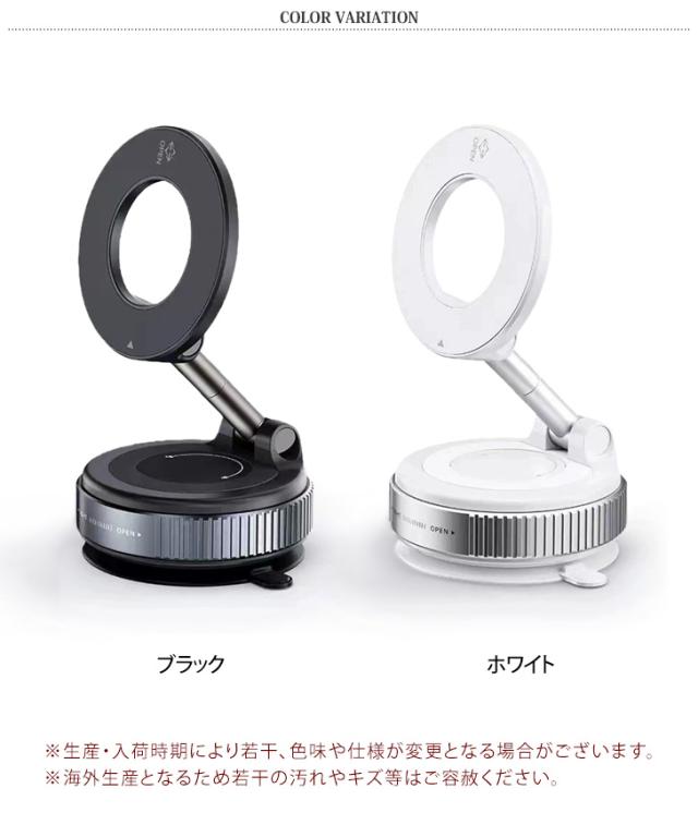 ■注意事項3:iPhone12以降のマグネット対応機種かつ、スマホケースを装着していない状態のみ、本製品に直接設置いただけます。その他の機種、もしくはスマホケースを装着した状態で設置する場合は、付属のマグネットリング(粘着式)をご使用ください。