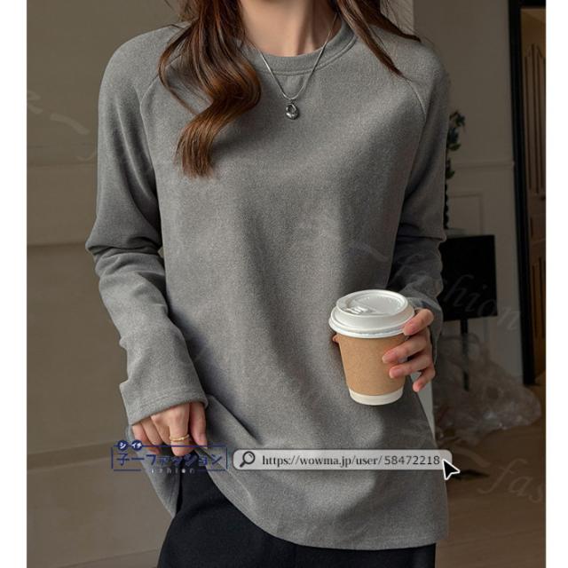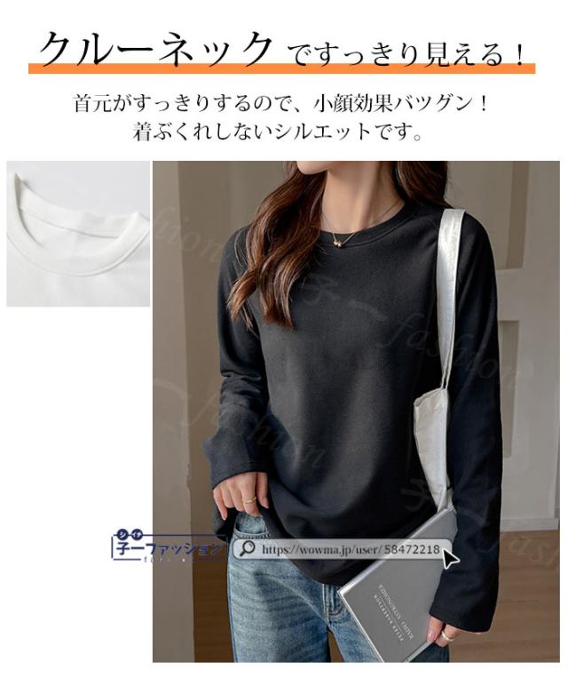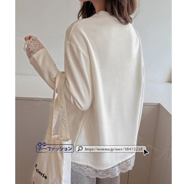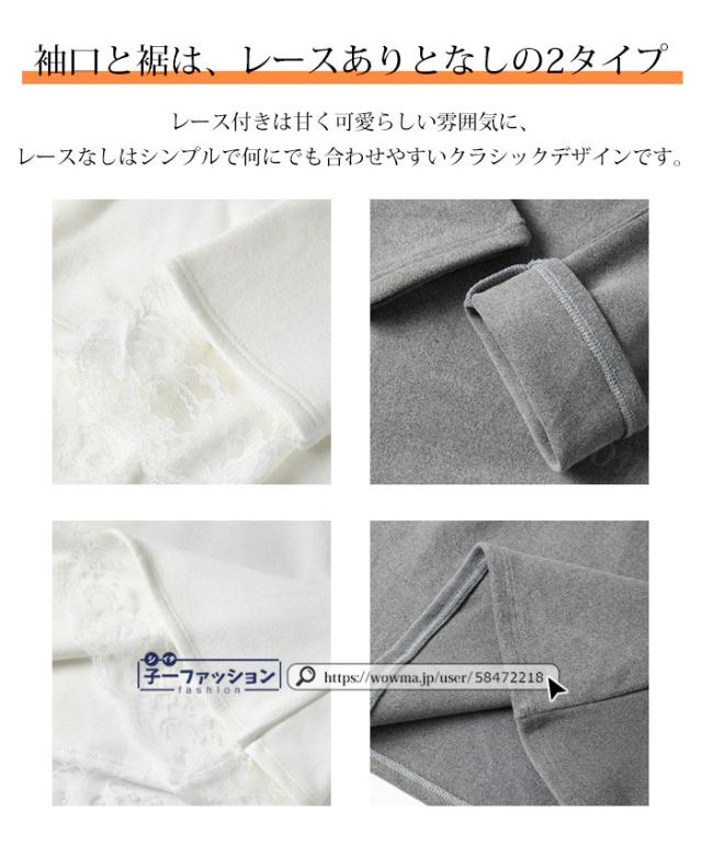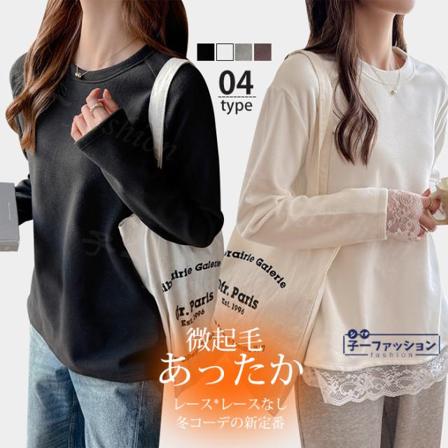 <1点あたり1,550円!2点同時購入&クーポン利用で>Tシャツ トップス 微起毛 カットソー 長袖 重ね着風 トップス 2type クルーネック レース 無地 薄手 柔らかい 伸縮性 ストレッチ シンプル 大人 ロンT インナー 可愛い 着回し
