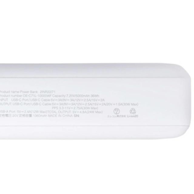 モバイルバッテリー ケーブル一体型 タイプC 10000mAh エレコム 30W リチウムイオン電池 残量表示 Type-C USB-A しろちゃん DE-C71L-10000WF