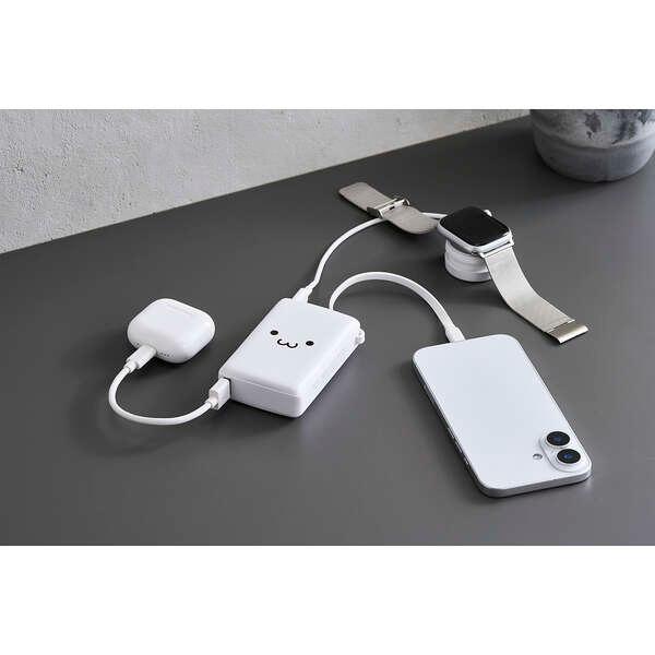 ● USB Type-C一体型ケーブルに加え、USB Type-Cポート×1とUSB-Aポート×1を搭載。最大で3台の機器を同時に充電できます。