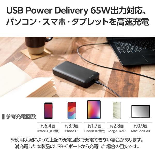 〜 USB Power Delivery 65W出力に対応し、パソコン、スマートフォン、タブレットを高速充電できる、20000mAhモバイルバッテリー〜