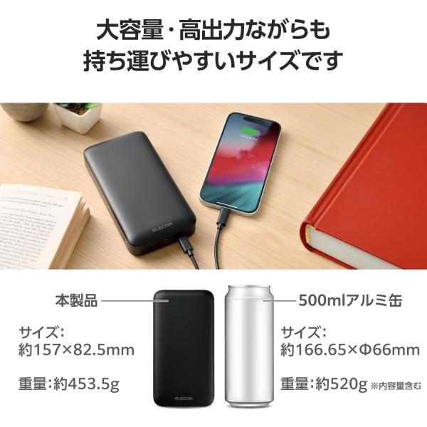 エレコム モバイルバッテリー 20000mAh 合計75W / 65W (単ポート) USB PD対応 3ポート Type-C×2 USB-A×1 大容量 C-Cケーブル付属 ブラック DE-C50L-20000BK