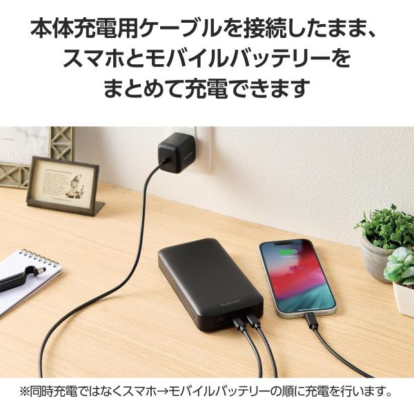 ● 本体充電用ケーブルを接続したままでスマートフォンとモバイルバッテリーを充電できるまとめて充電対応。