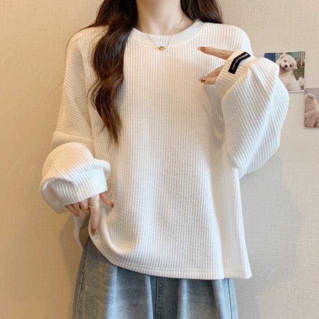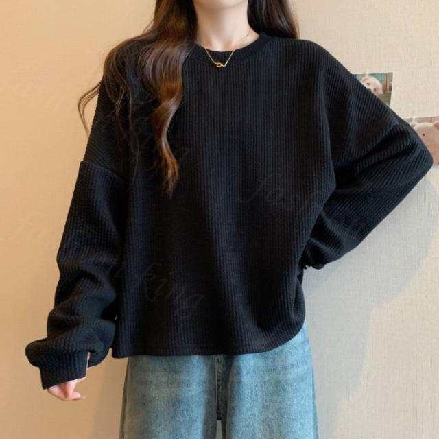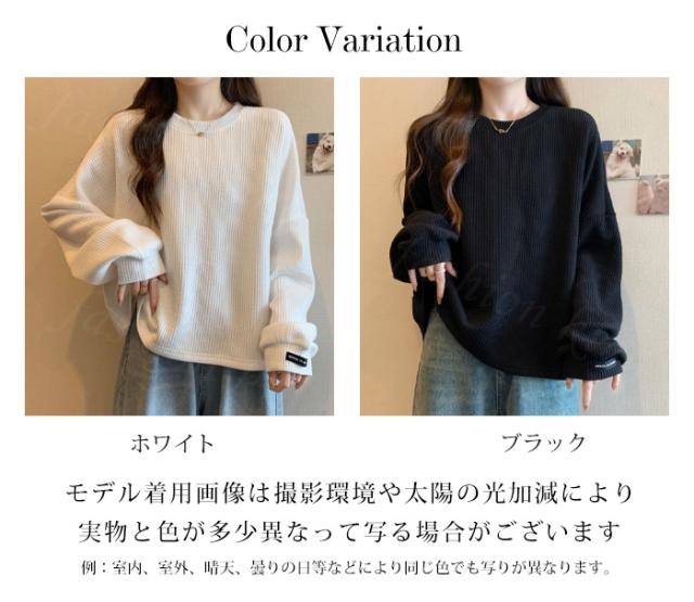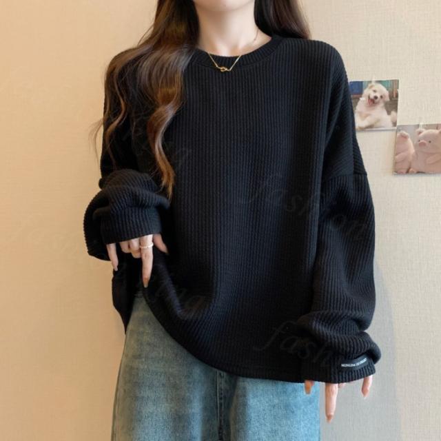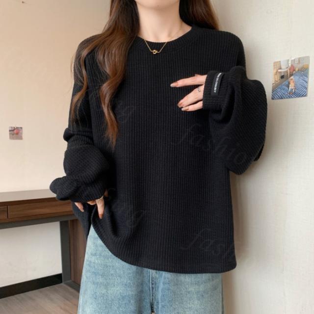 <1点990円!2点購入&クーポンで>Tシャツ カットソー クルーネック 長袖 プルオーバー 凹凸感 レディース トップス 秋 冬 シンプル 無地 カジュアル ロング おしゃれ ホワイト ブラック